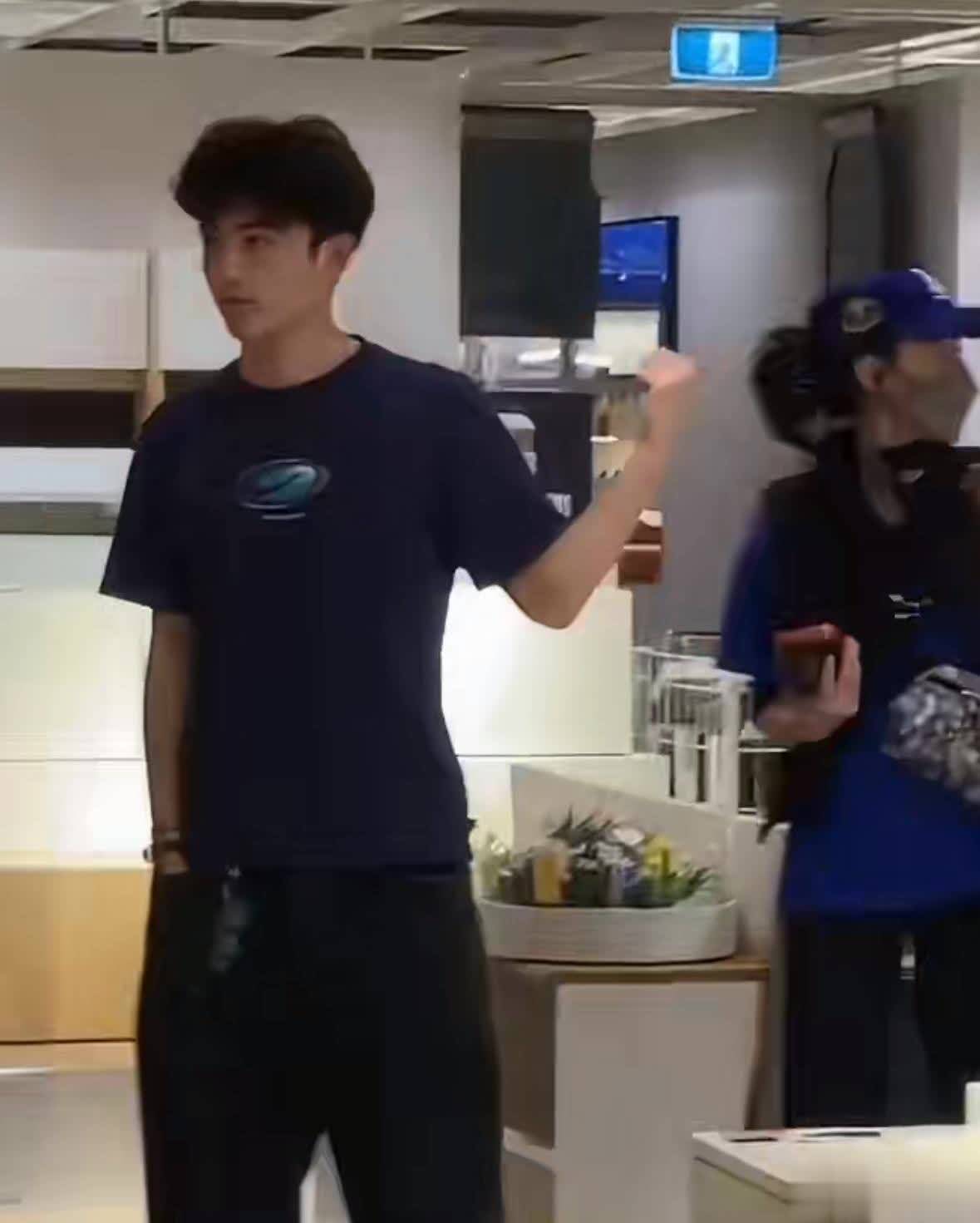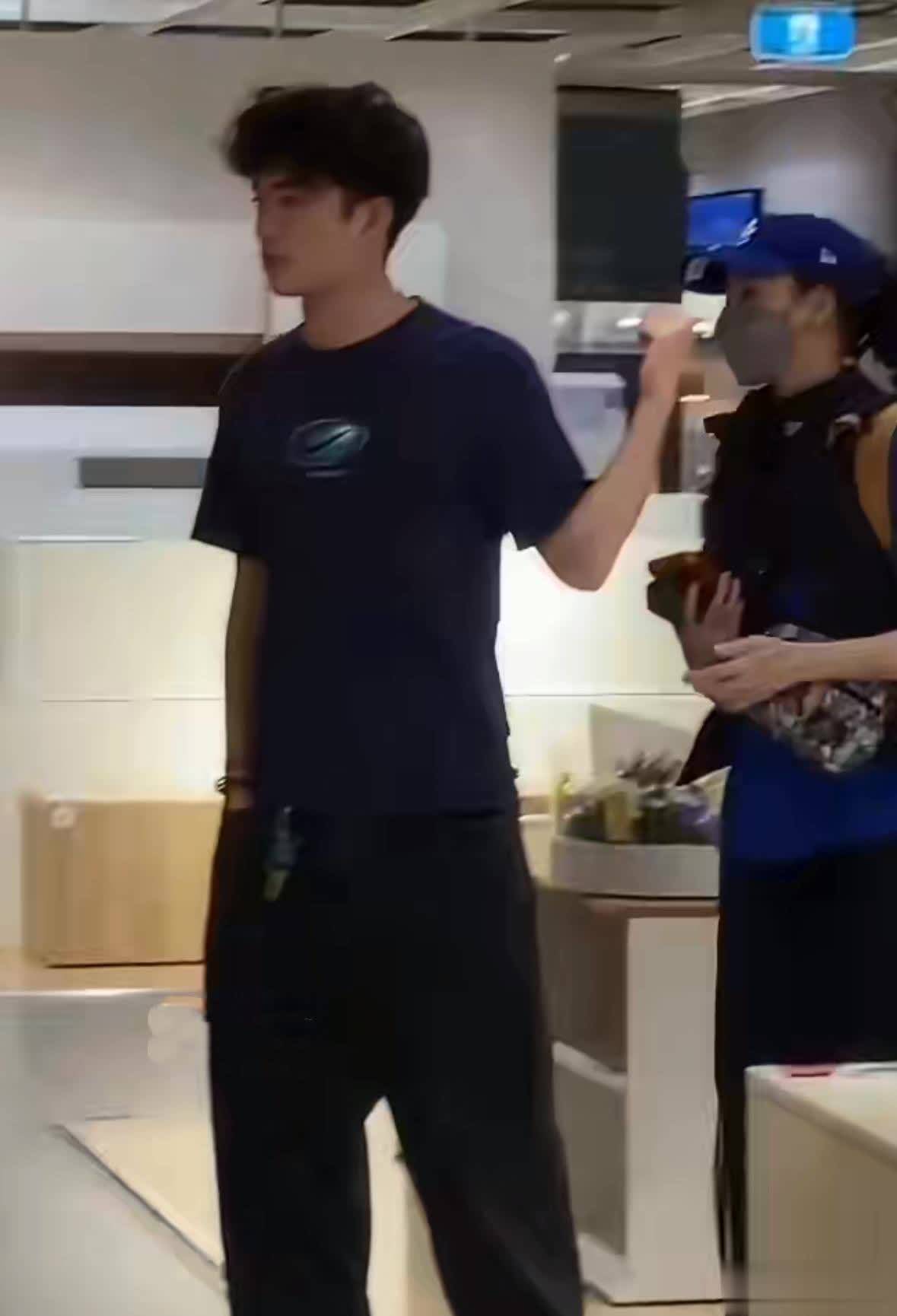 Lucas当天身着一身休闲服饰露面,深色短袖搭配黑色运动长裤,外出从不遮遮掩掩,口罩、帽子一概不戴,丝毫不怕被路人认出。