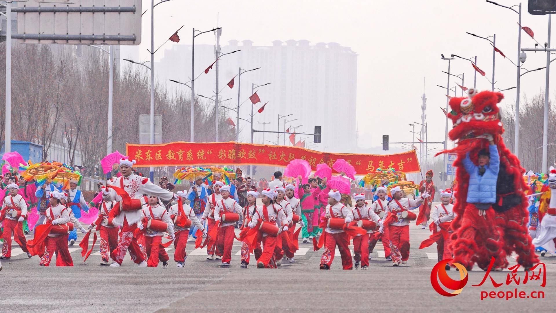 活动现场,伴随着《打起手鼓舞起龙》《骏马奔腾贺盛世》等精彩节目的接连上演,一辆辆花车作为移动的舞台,将舞龙舞狮、马术表演与民俗展示串联成流动的风景线,吸引众多市民沿途驻足打卡、拍照记录。